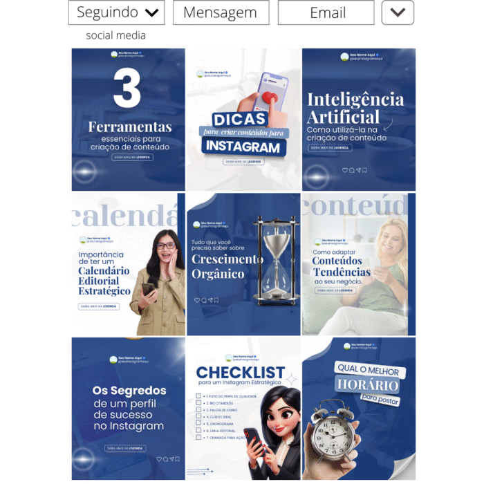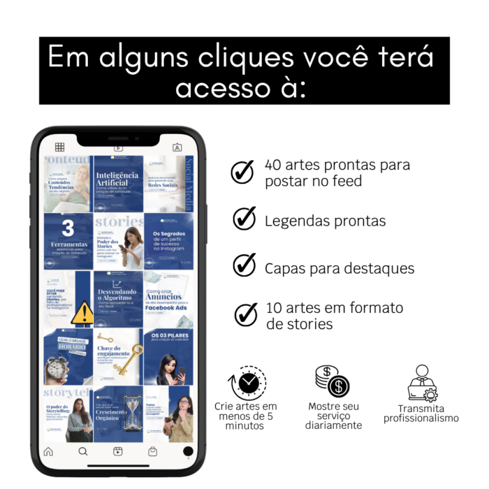 – 1 Pack de templates editáveis no Canva Gratuito com 40 artes digitais para social media, nos tamanhos 1080×1350 e 1080×1440, ideais para o feed das redes sociais.